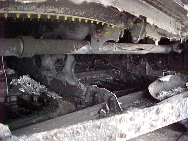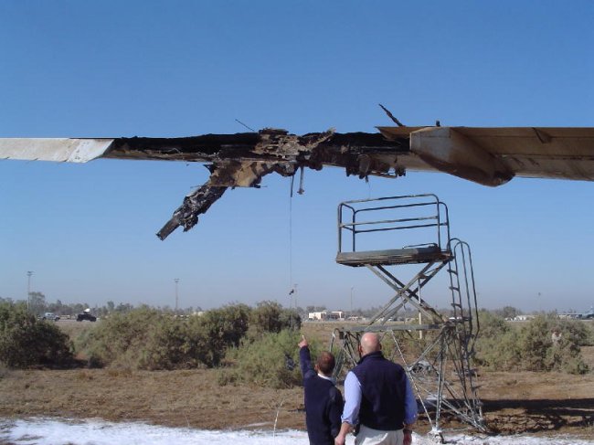 The point of entry pics show where a projectile entered Tank 1A, which was full of fuel, and, after it ignited, proceeded to burn away at the spar. The fuel tank ribs in the area directly in front of the O/B flap are burnt almost 50% through.